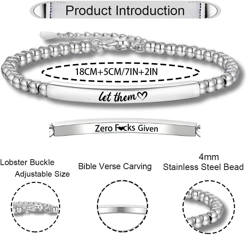 Adjustable Size: The Motivational Bracelet Comes With 4mm Stainless Steel Beads, Smooth And Bright, With An Overall Beautiful And Atmospheric Appearance; Adjustable Size From 7 Inches To 9 Inches, Suitable For Most Wrist Sizes, Ensuring A Perfect Fit For Most Women