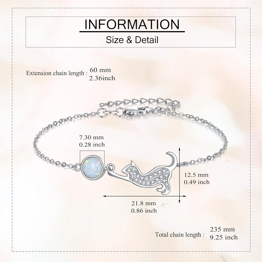 Cat Bracelets for Women 925 Sterling Silver Cat Opal Bracelet Animal Jewelry Gifts for Women