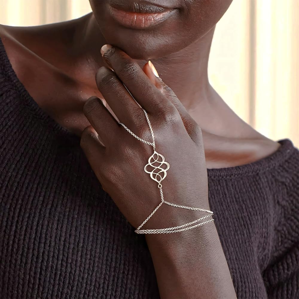 Cute Hand Chain Bracelet for Women: Our stylish finger ring bracelet is made of high quality alloy, the surface fine polishing silver plating process ensures bright, durability and safety, nickel and lead free, won't hurt your skin and not easy to tarnish