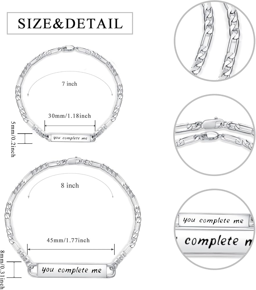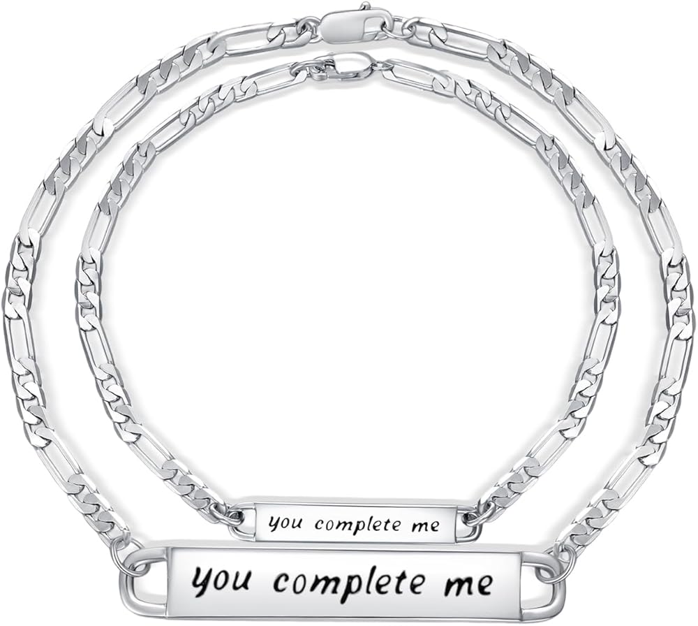 Couple Jewelry Set: The couple bracelets are full of meaning. "you complete me" engraved on front. With her/him, your life becomes complete and your future is full of hope