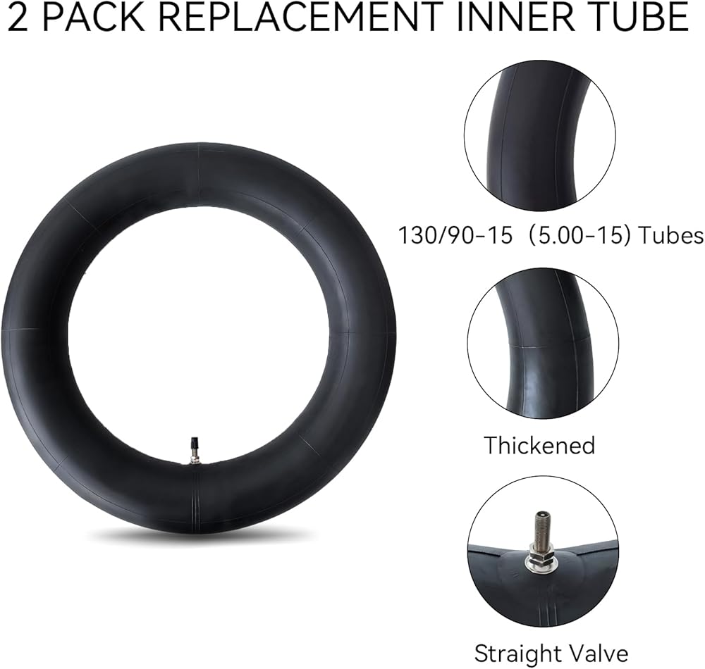 2 Pack 130/90-15 Inner Tube 5.00-15 5.10-15 Motorcycle Tire Tubes 500-15 510-15 Heavy Duty with Straight Valve Stem