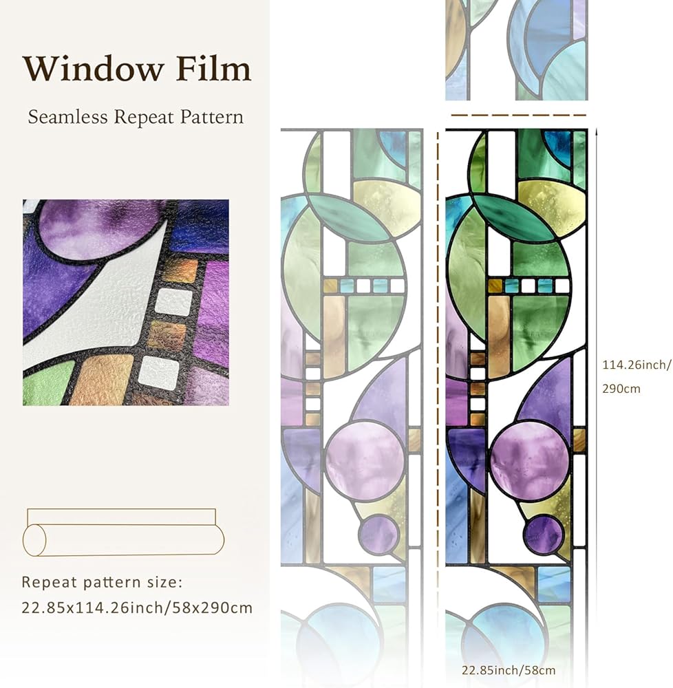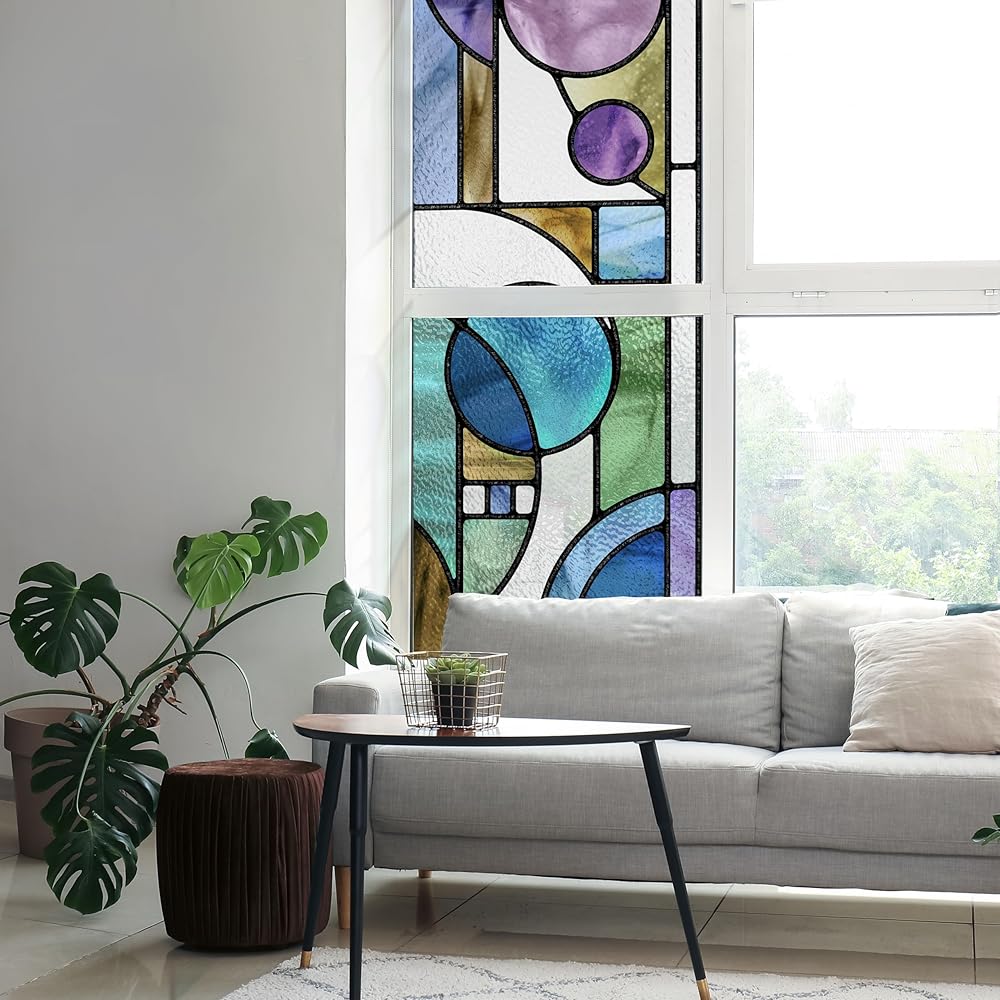 Privacy and stained glass effect: Transform your clear glass widows into elegant privacy panels with our original double sided hand drawn geometry patterns. The film creates a stunning faux stained glass effect, enhancing both aesthetics and privacy in your space