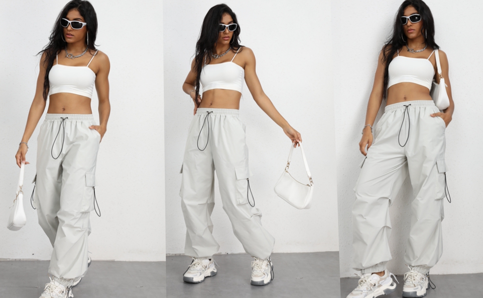 MATERIAL:Parachute Pants for Women are Made of Mid-Weight Parachute Fabric, Perfect For All Seasons/The Fabric is Mid-Light and Breathable, Not Heavy Even In The Summer and Sultry Weather