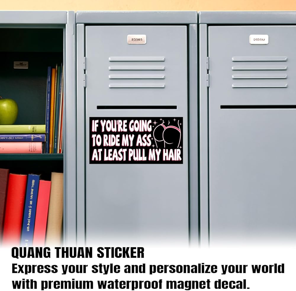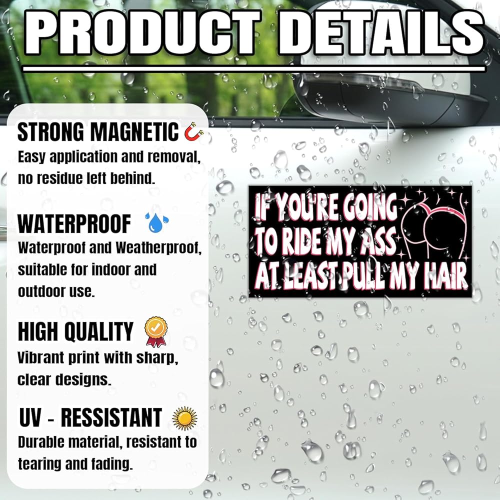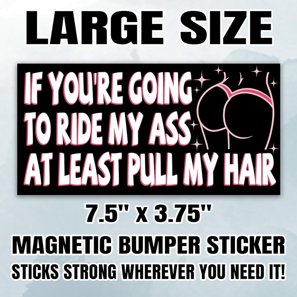 Magnet If You're Going to Ride My Ass at Least Pull My Hair Car Magnet Decal Sarcastic Waterproof Vinyl Magnetic Bumper Sticker for Refrigerators Cars 7.5x3.75in
