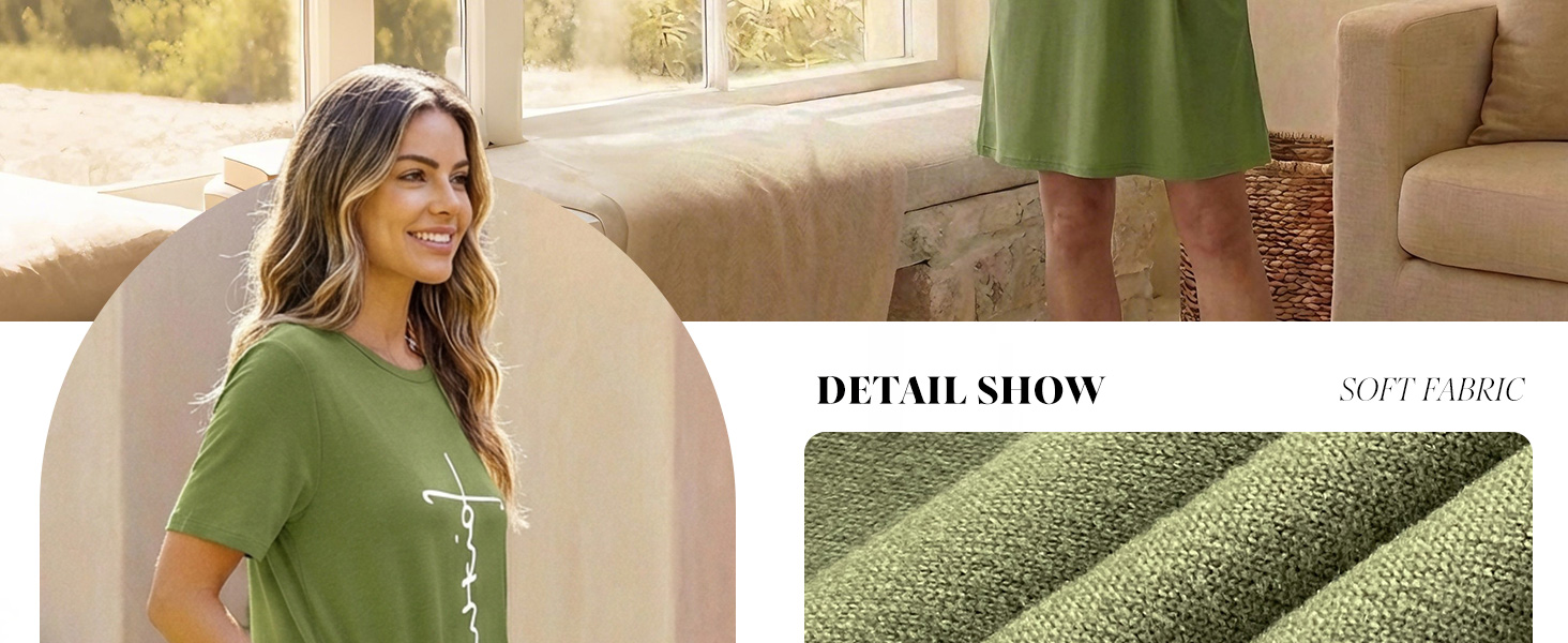 Soft & Comfortable Fabric – Made of 95% polyester and 5% elastane, this women's night gowns is soft, lightweight, breathable, and offers medium stretch for all-night comfort