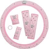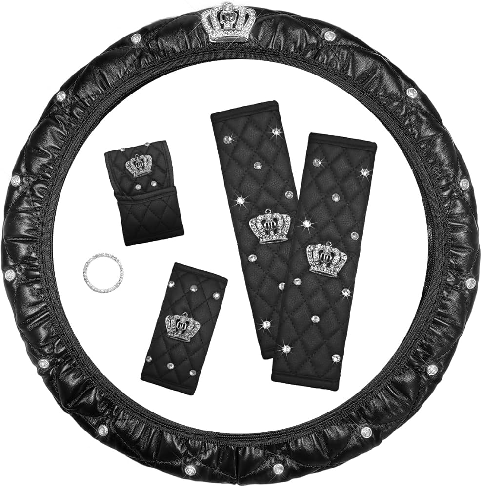 Package Includes: This beautiful kit is fully accessorized. It includes a steering wheel cover and a start button ring. In addition, two automotive seatbelt covers, a shift lever cover, and a handbrake cover are also included, making it the ideal set for decorating your vehicle's interior