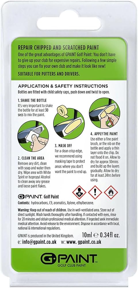 GPAINT, the simplest way to personalise, touch-up or custom paint-fill your golf clubs. From irons, putters and wedges to drivers, woods and hybrids, Achieve professional results with ease. Apply paint-fill to existing numbers, letters, logos, sight-lines and stamping to any golf club in your bag. (not suitable as a base coat)