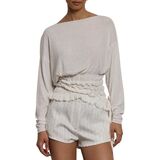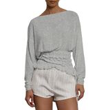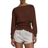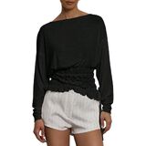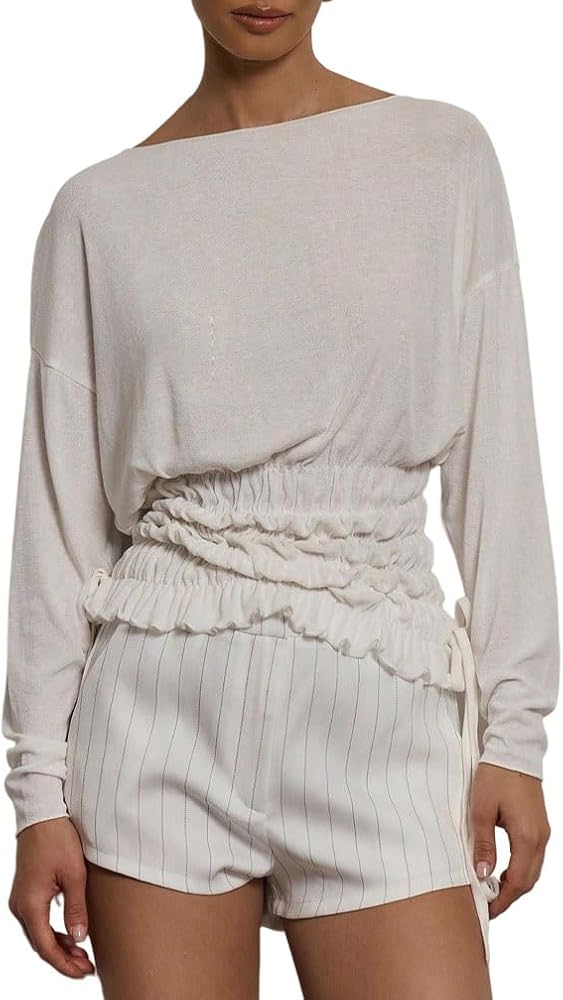 Material:Women chic boat neck long sleeve ruched t shirt.Crafted from a soft, breathable knit blend fabric,this asymmetrical off shoulder cinched waist shirt offers a cozy, skin-friendly touch with excellent stretch for all-day comfort,perfect for transitioning into autumn fall.