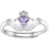Purple Claddagh ring Size & Material:irish claddagh rings for women size is 7#,it can adjustable 6 to 10#,unique two hands hold a 4mm heart birthstone,dainty and so cute ,suit every finger.s925 sterling silver and white gold-plated outside,it keep the birthstone ring gifts heart Shiny, will not turn green. we include a silver-cloth cleaning in this gift set.