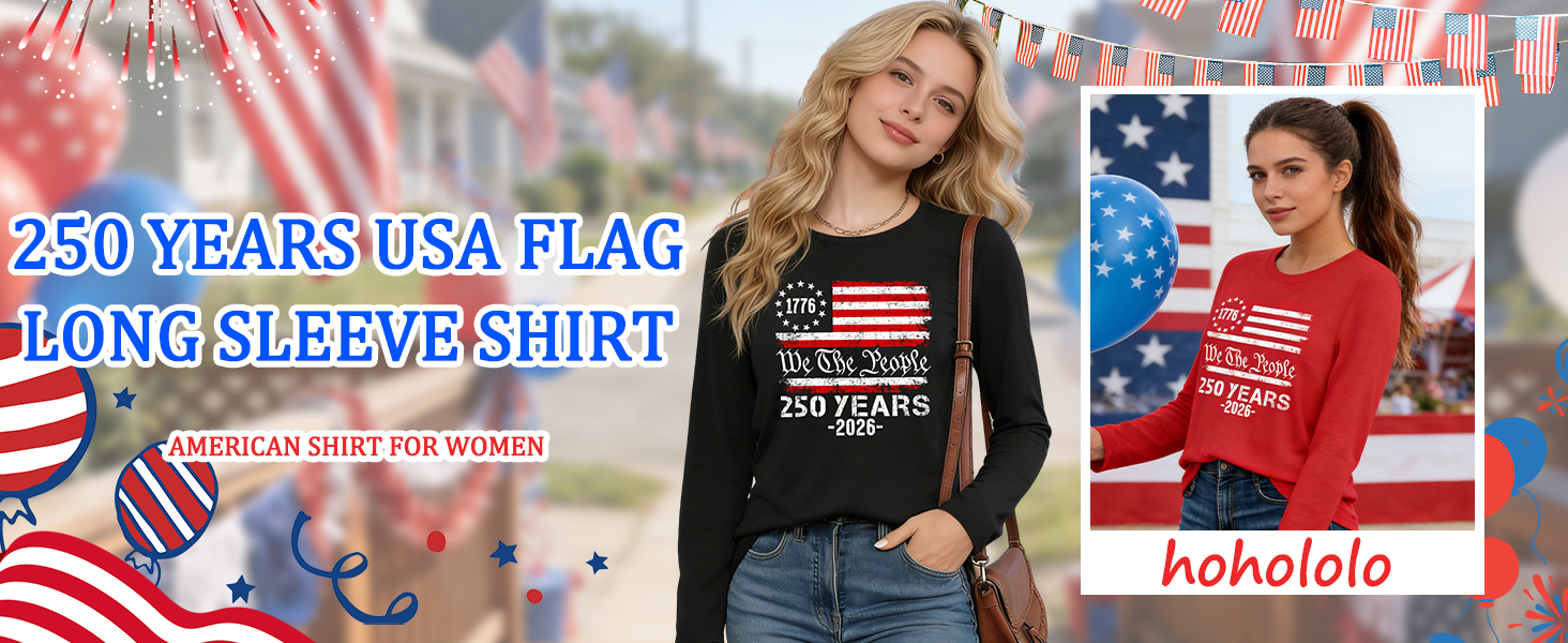 DESIGN: These 250th birthday USA long sleeve tees feature retro distressed American flag prints, paired with "We The People" and "250 YEARS 1776-2026" text, celebrating the US semiquincentennial with a vintage patriotic style