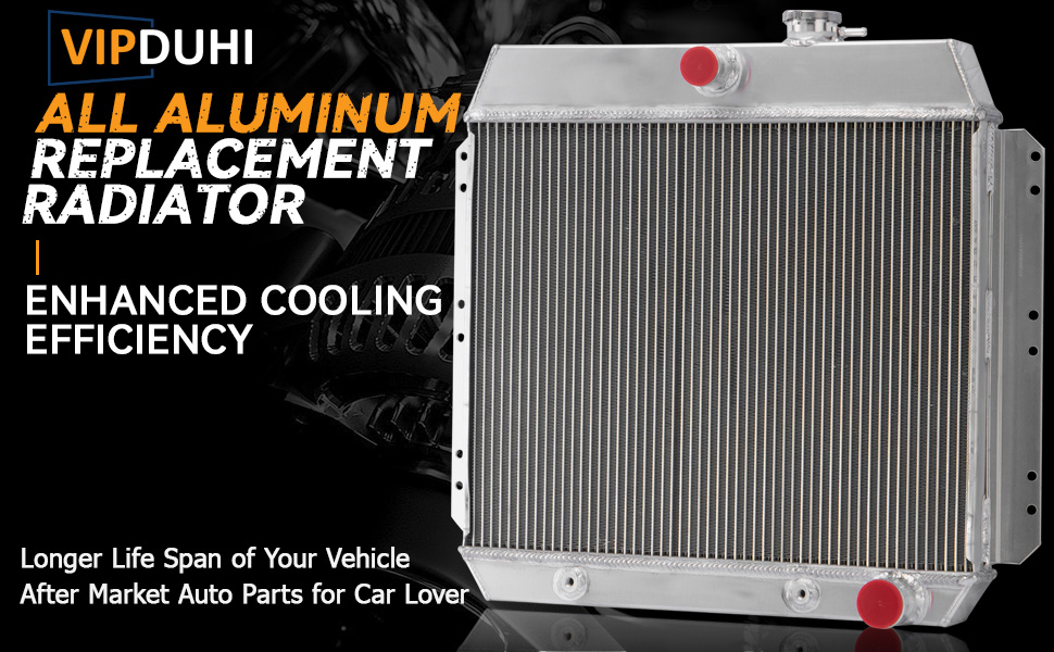 High Cooling Efficiency: VIPDUHI radiator cooling rows are spaced 3/8'' apart, 25% more rows within the core, 14-16 cooling fins per inch, approximately 1500 more cooling fins, provides 30% more cooling capacity than typical aluminium radiators