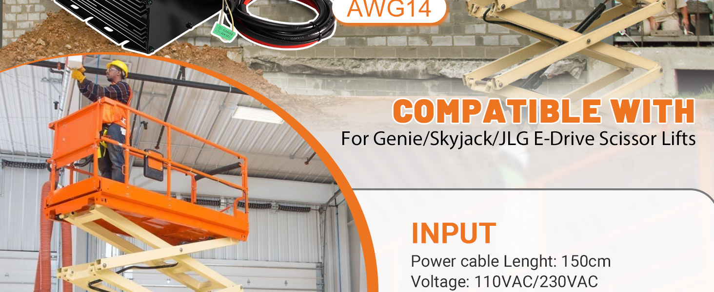 【Universal Compatibility】This battery charger is Designed to work seamlessly with Genie, Skyjack, and JLG scissor lifts. Wherever your job takes you, trust this charger to deliver consistent performance across your fleet.