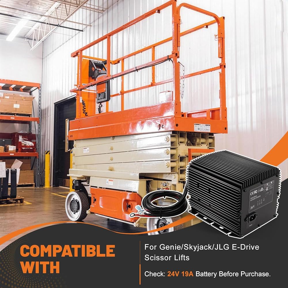 【Fast & Reliable Charging】Enjoy a quick and steady power boost with 19A, 24V, and 600W output. This charger efficiently restores your lift's battery, minimizing downtime and keeping your projects on schedule. Always verify your equipment's specs for a perfect match.