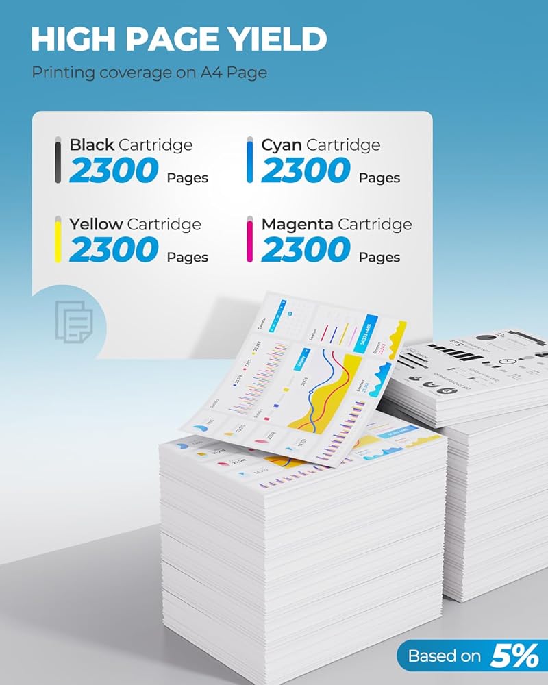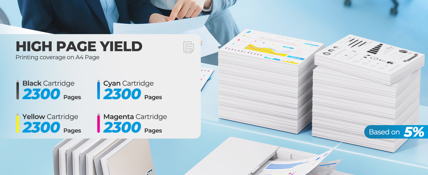 Estimated Page Yield: Up to 2300 pages per 410A Black toner cartridge, 2300 pages per 410A color toner cartridges (Cyan, Magenta, Yellow) at 5% coverage (Letter/A4)
