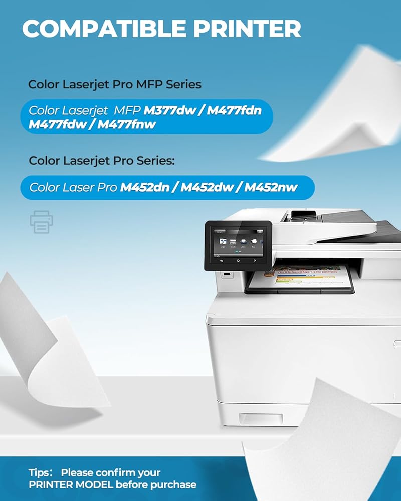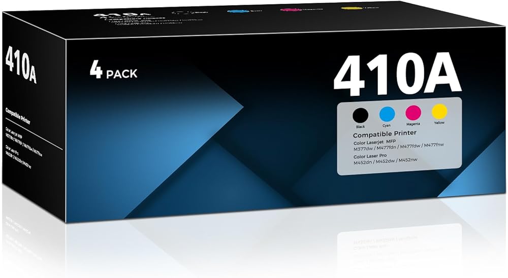 Compatible with: 410A toner cartridges 4-Pack Compatible for HP Color Pro MFP M477fnw, Color Pro MFP M477fdw M477fdn, Color Pro M452nw M452dn M452dw M477 M452 477fnw 477fdn 477fdw M377dw Printer