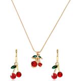 Fruit Cherry Earrings Necklace--This beautiful cherry earrings necklace contain absolutely no nickel or lead, making them safe for people with nickel and lead allergies. Add this great pair of earrings to your jewelry collection and have peace of mind every time.