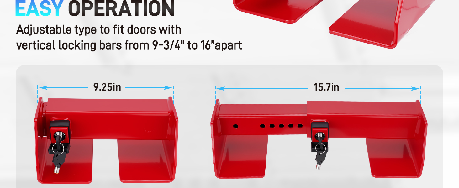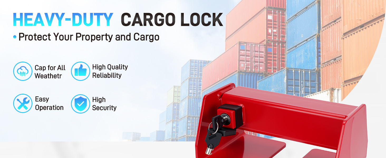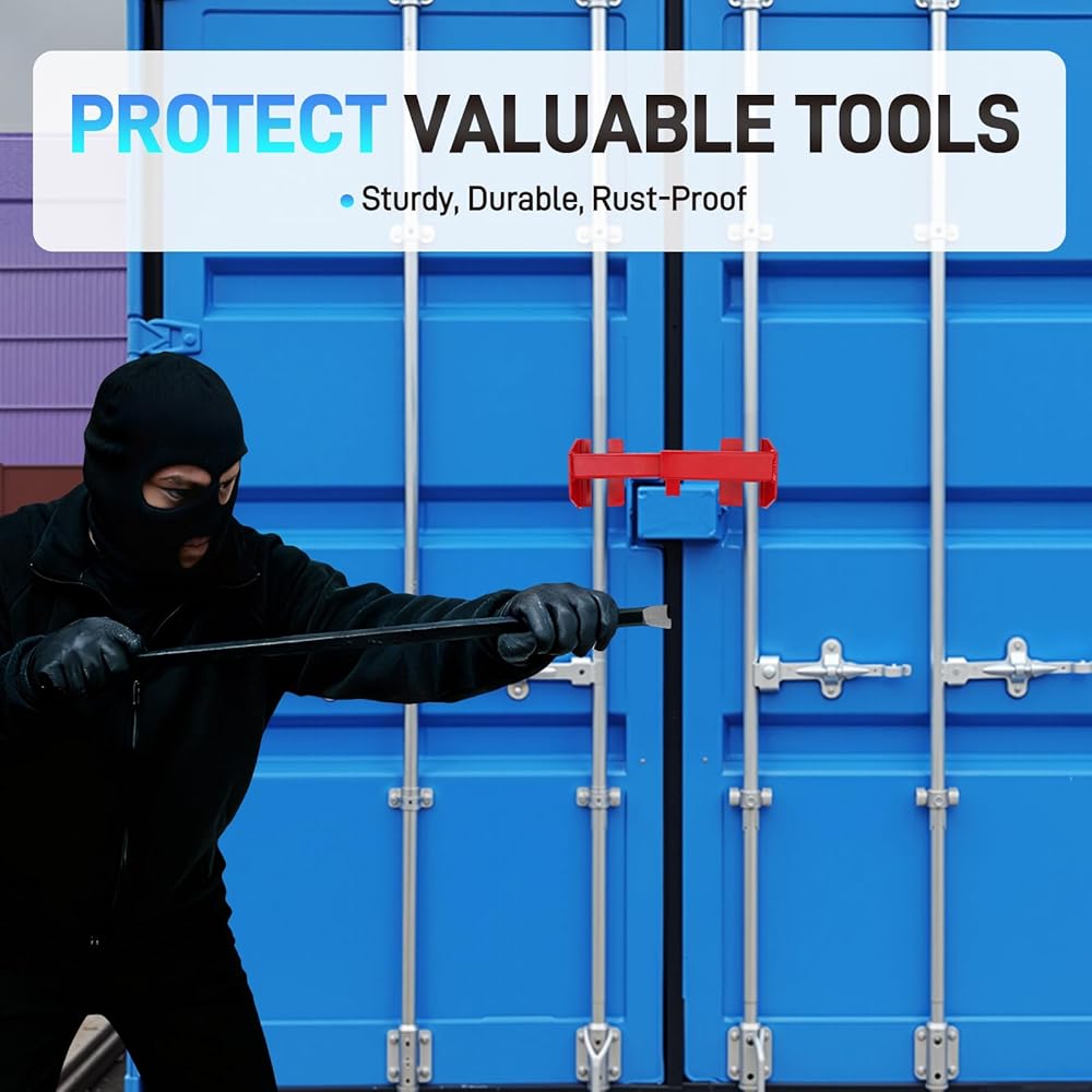 【Heavy Duty Cargo Door Lock】Industrial-grade lock for shipping containers and semi-trucks. Fits vertical bars spaced 9¾"-16" (extensions available). Compatible with all standard container configurations including 6ft, 8ft, 10ft, 20ft, 40ft, 45ft, high cube and refrigerated units.Ideal for maritime, construction, and over-the-road transport