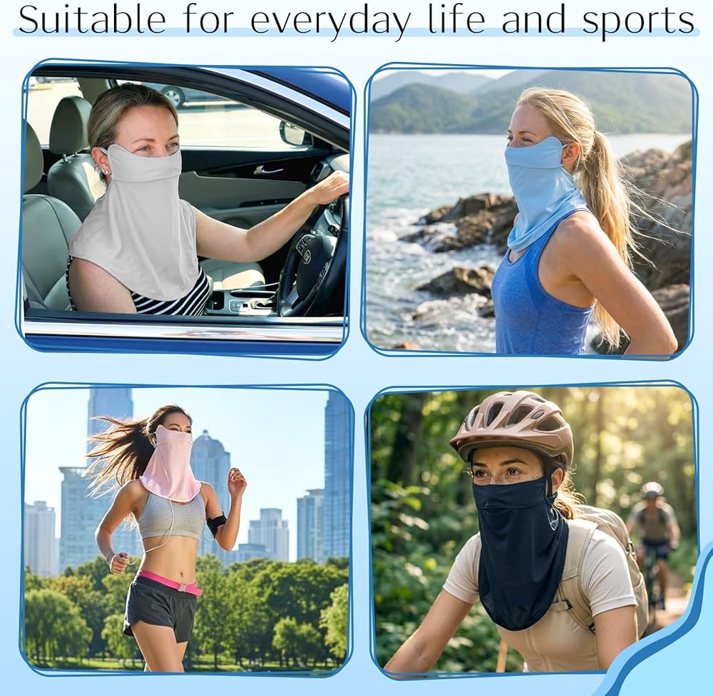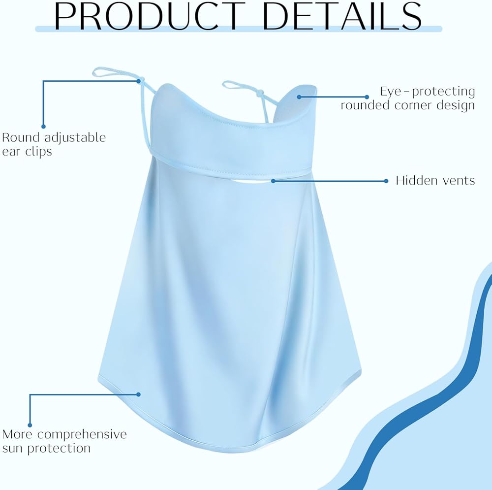 UPF 50+ UV Protection: This UV face cover offers UPF 50+ protection, shielding your skin from harmful UV rays with an extended coverage area, shielding your face and neck from sun damage; Perfect for daily sun protection and outdoor adventures