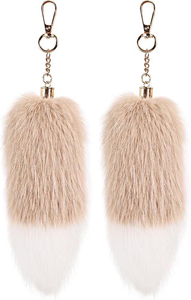 【2-Pack】You can pass one along to a friend, use one for keys and one for your backpack/purse charm, or keep an extra as a spare.Each cute fluffy tail is around 6.7 inches long by itself, and the fox tail plush keychain – including the clasp– stretches to about 10 inches