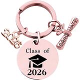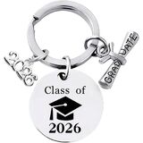 This white graduation keychain features a minimalist yet elegant design, with "Class of 2026" engraved on the front and customizable text (such as a name or message) on the back. Crafted from high-quality metal with a polished finish, it serves as a unique and meaningful memento for high school or university graduates.