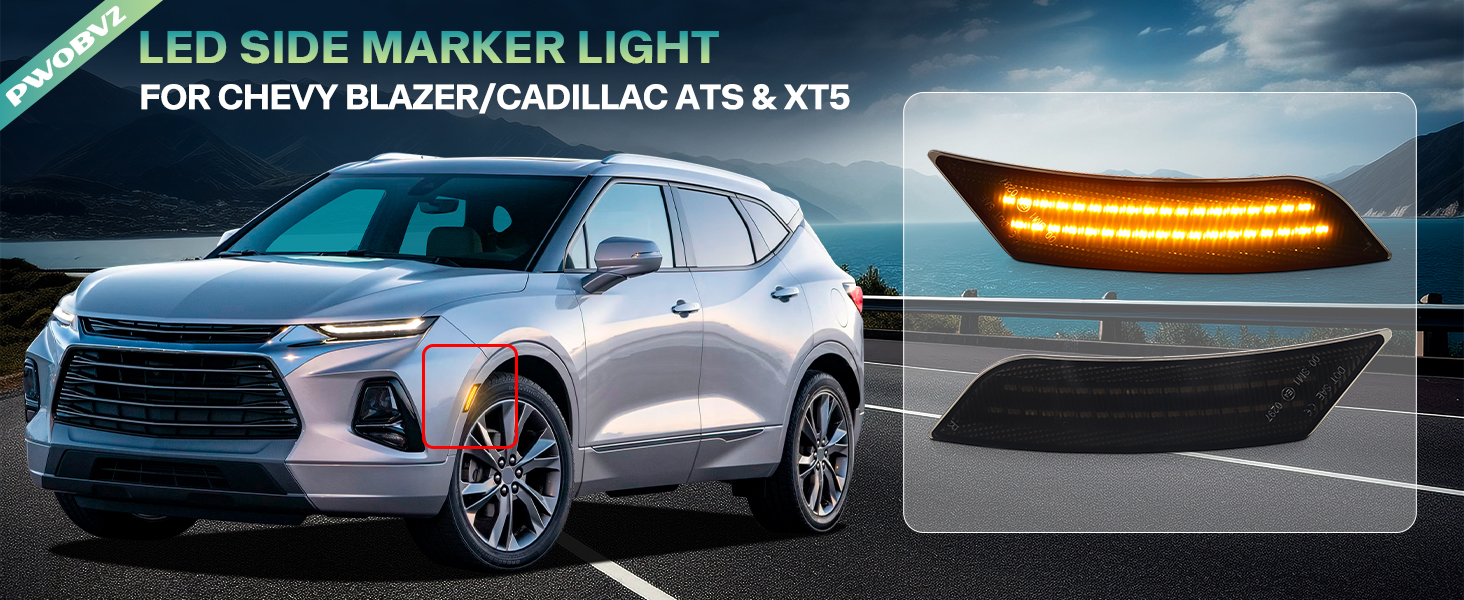 Compatible List: led side marker lights for 2019 2020 2021 2022 2023 Chevrolet Blazer; for 2013 2014 Cadillac ATS; for 2017-2024 Cadillac XT5. Replacement Part Number:# 22941174 22941173