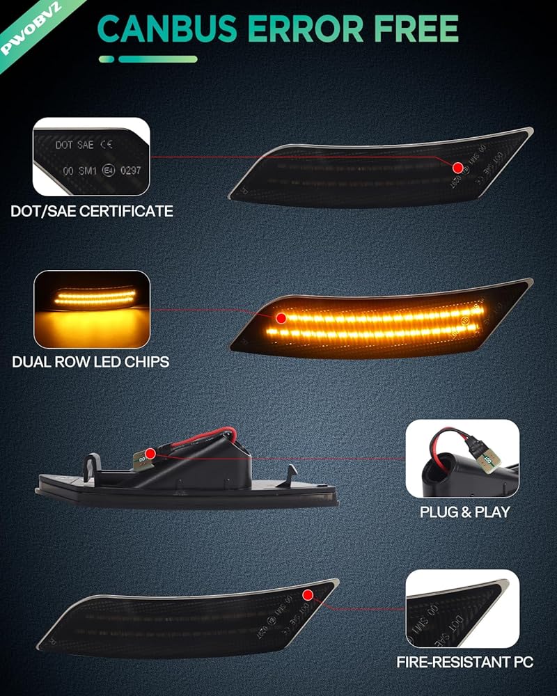 Durable Material: Smoked lens led side markers adopts with high quality PC lens & black housing for both driver and passenger side, features IP67 waterproof and scratch resistant; No faded with long-time exposure on all kind of extreme weather