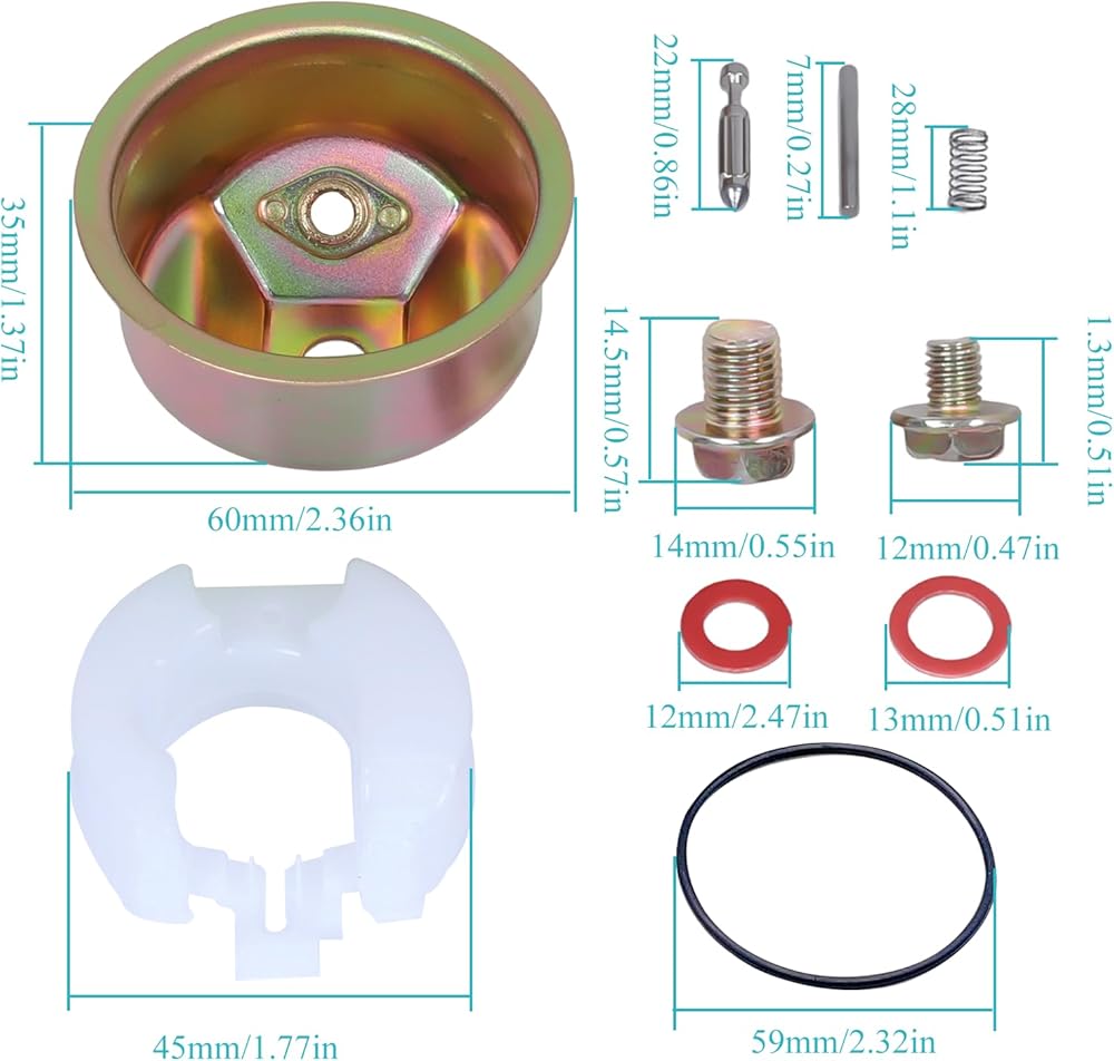 Carburetor float bowl kit for Coleman Powersports CT200U, CT200U-EX, BT200X, BR200, and fit for Coleman Powersports BK200, KT196 go kart.
