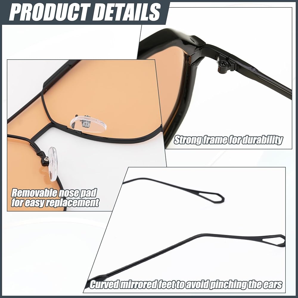 Retro Style: These aviator sunglasses have a timeless retro style with the latest fashion trend. The square frames offer a versatile fit for different facial shapes, while the assortment of lens colors ensures seamless pairing with any outfit for everyday style
