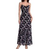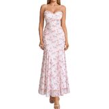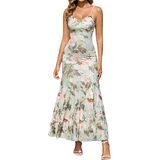 Features: Spaghetti strap dresses for women, lace sweetheart neckline, flowy swing ruffle, mesh floral dress, floral maxi dresses for women, adjustable strap, high waist