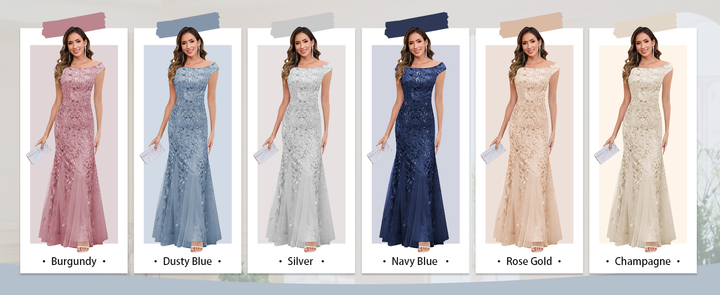 • Design:Mermaid Long Mother of The Bride Dresses for Women,Sparkly Sequin,Lace Appliques,Off The Shoulder,Cap Sleeve,Beaded,Floor Length,Empire Waist,Elegant,Petite,Modest,Classy,Zipper,Built-in-Bra. You will receive many compliments on this dress.