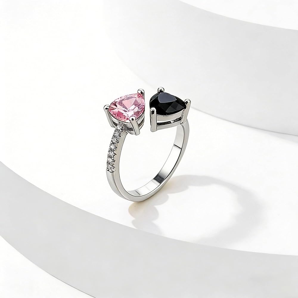 BLACK and PINK-Inspired Color & Design:This ring boasts two carefully handpicked heart-shaped gemstones,showcasing the group's iconic pink and black color scheme.eye-catching inspired aesthetic,each ring not only celebrates your bias but also adds a playful, colorful pop to any outfit. The heart-shaped gemstones combines contemporary fashion with timeless appeal, making these bracelets ideal for everyday wear or special occasions. Whether you're heading to a concert or wanting to show your dedication to Team, these ring serve as the perfect fashion statement.
