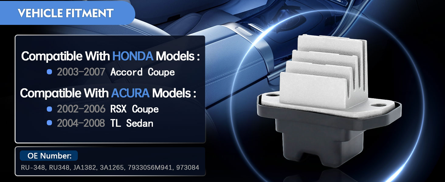 【Compatible OEM Numbers】OE Replacement HVAC Blower Motor Resistor, Directly Fit. Reference Number: RU-348, RU348, JA1382, 3A1265, 79330S6M941, 973084. Meets or exceeds OEM standards, 100% tested before shipping. We only use the highest grade materials to enhance your love car performance