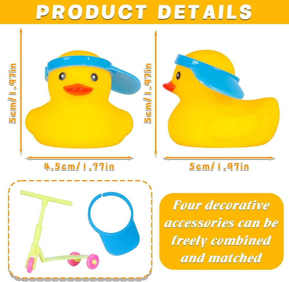 CUTE RUBBER DUCK: You'll receive a cute yellow duck adorned with blue Hat and mini scooter,which enhance its charm and make it look more fun.