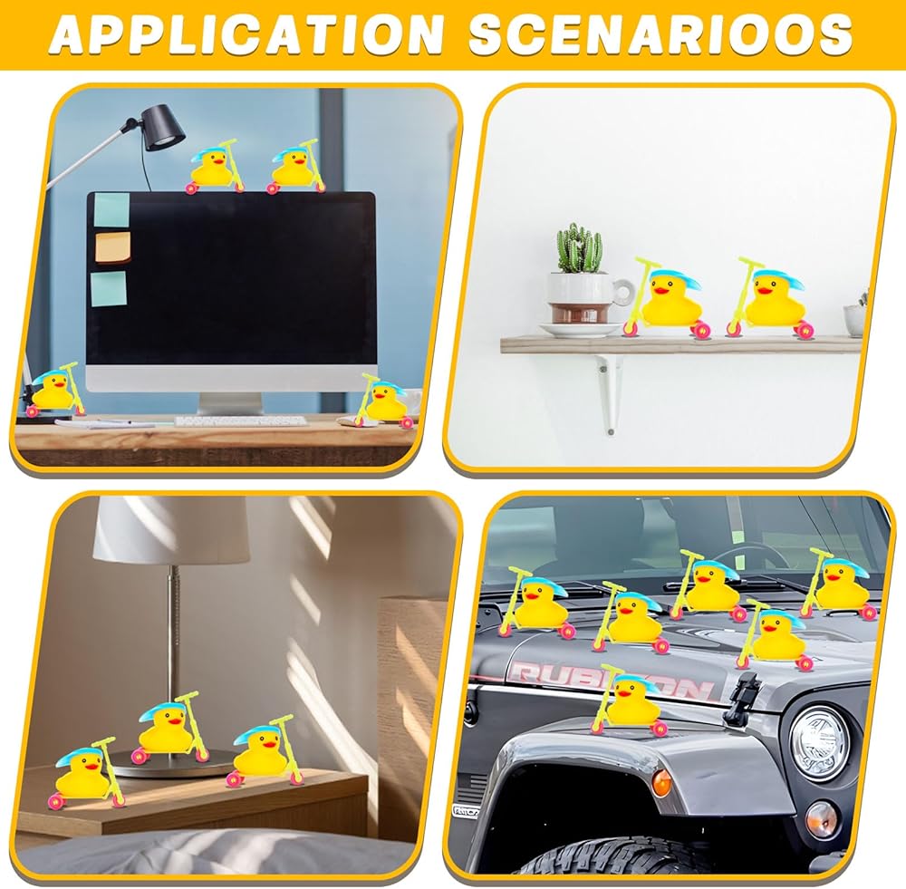 HIGH QUALIT MATERIAL: Crafted from safe and non-toxic silica gel, our rubber duckies are smooth, soft, and flexible,they quack when you squeeze them! The cute "BEBE" sound they made is both funny and helps relieve your pressure, increasing the happy feelings during driving.