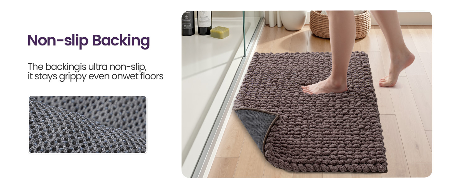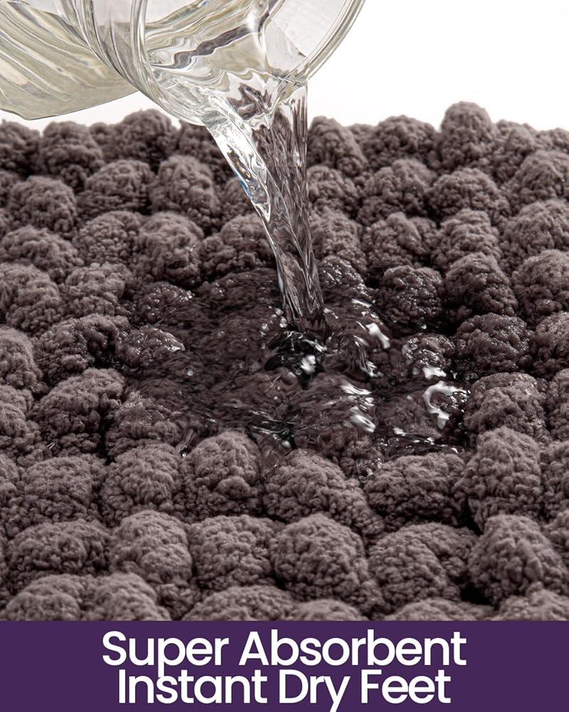 Absorbent and Quick Dry: The 100% chenille features advanced absorbent technology, which quickly and efficiently traps excess water from baths, showers, and sinks. This not only protects your floors from water drips but also keeps your feet dry in no time