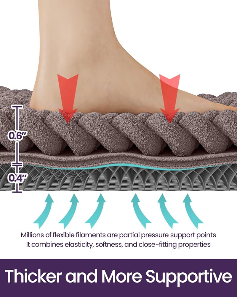 Soft and Comfort: Featuring 1.0 inch thick chenille surface that offers a soft and luxurious feeling underfoot. The twist weaving design and high pile enhance its plushness, while it soothes and warms your feet, shielding them from the cold floor beneath