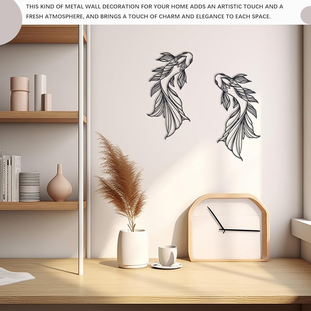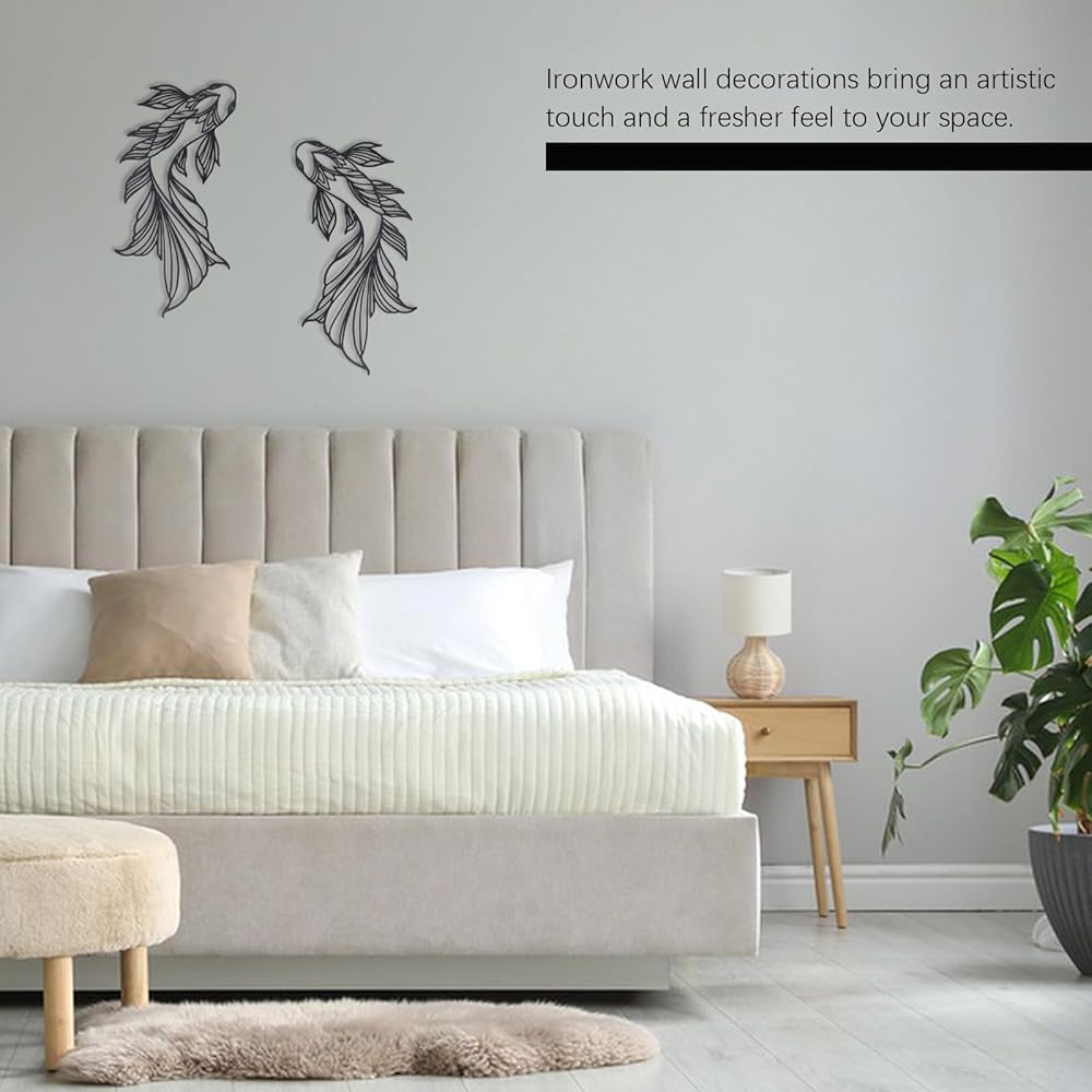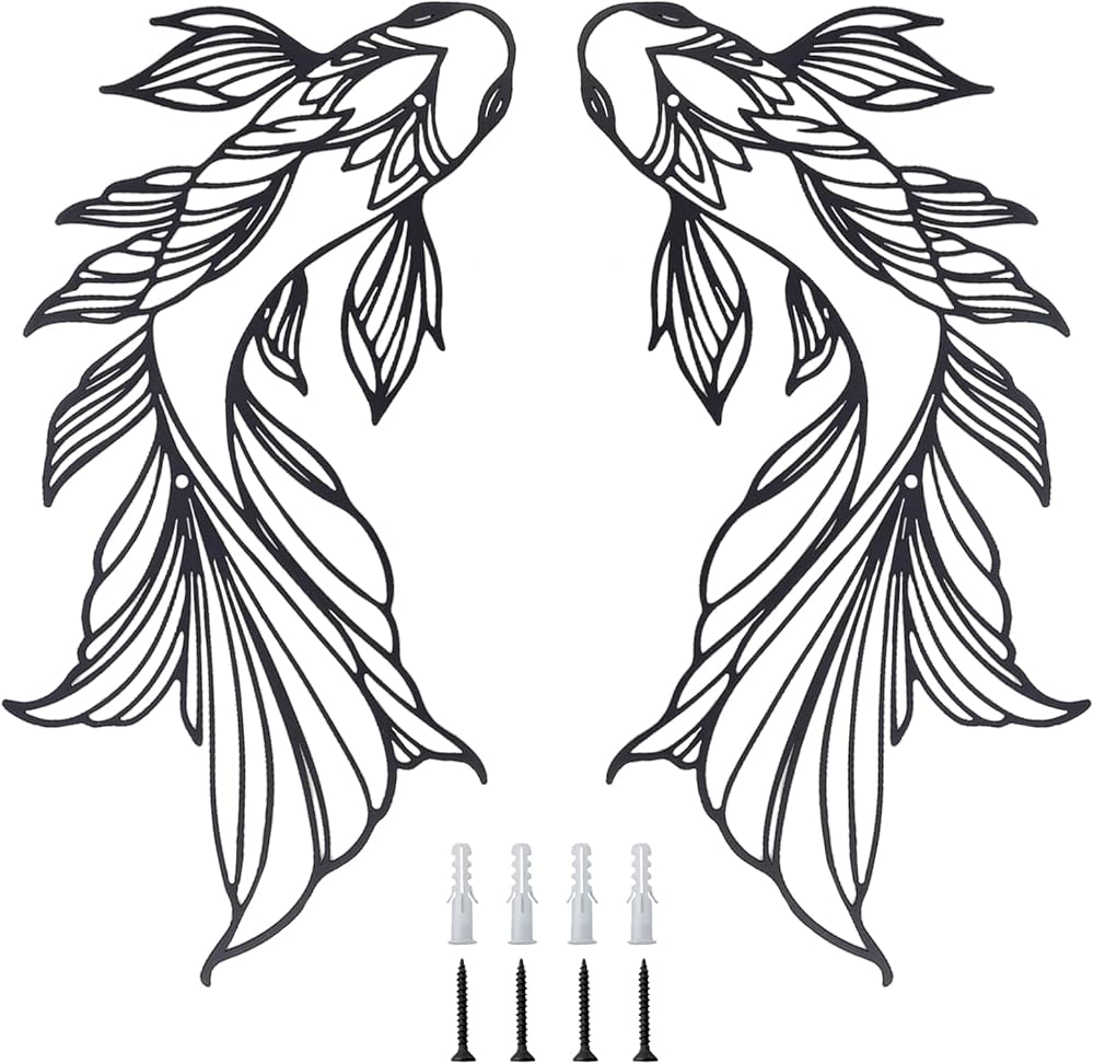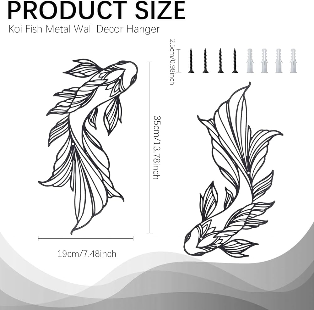ZJIVQO Koi Fish Metal Wall Art with Screws, Japanese Art Fish Wall Decor, Iron Fish Decorations for Living Room Bedroom Bathroom