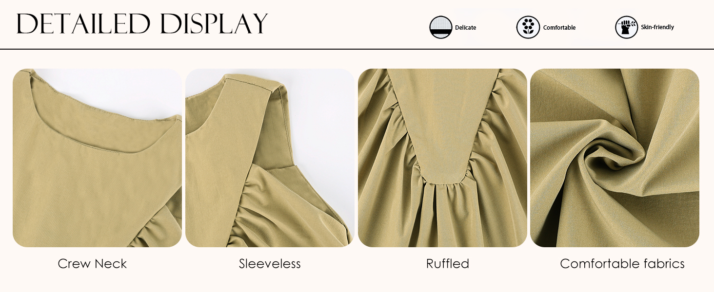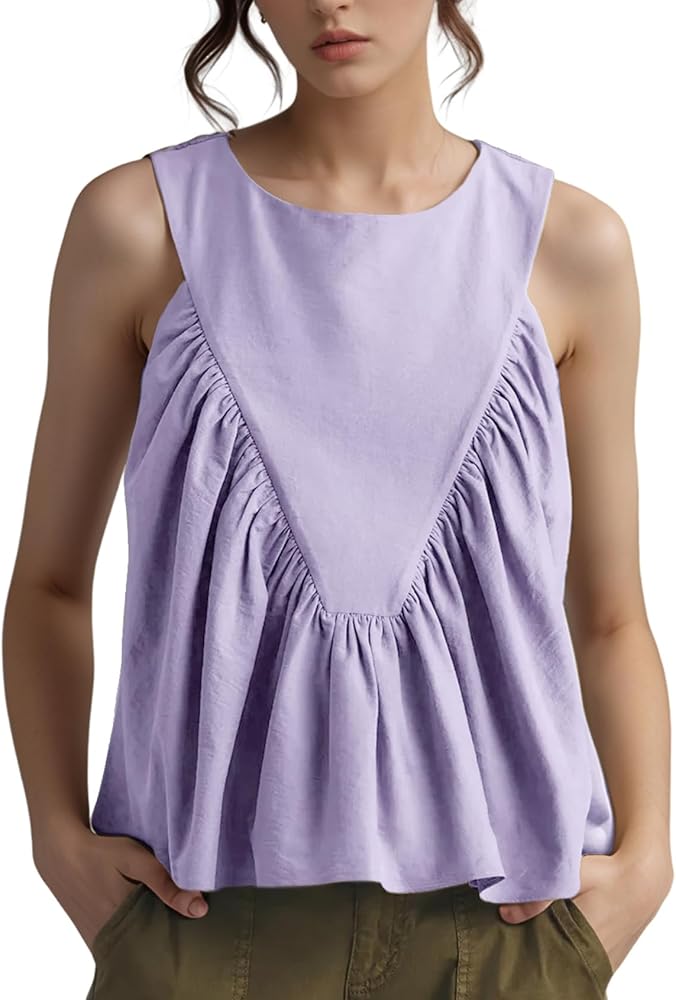 Features: This womens fashion ruffle tank tops features shirred detailing, a swing silhouette, and structured fabric - perfect for dressing up or down.