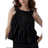 Styling: Sleeveless blouses for women dressy, ruffle blouse,swing silhouette, shirred detailing in v shape,pullover styling, elastane lining,business casual tops for women.