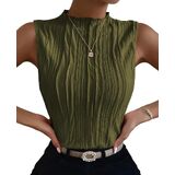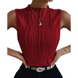 Features:Womens sleeveless tops,Lettuce trim mock neck,High neck,Racerback tank top,Exquisite pleated texture,Slim fit,Slimming,Tight,Sexy tank top,Solid color,Womens Dressy casual top,Women summer tops,Business casual shirts,Professional clothes.Suit for spring, summer, fall,Fahion and chic.