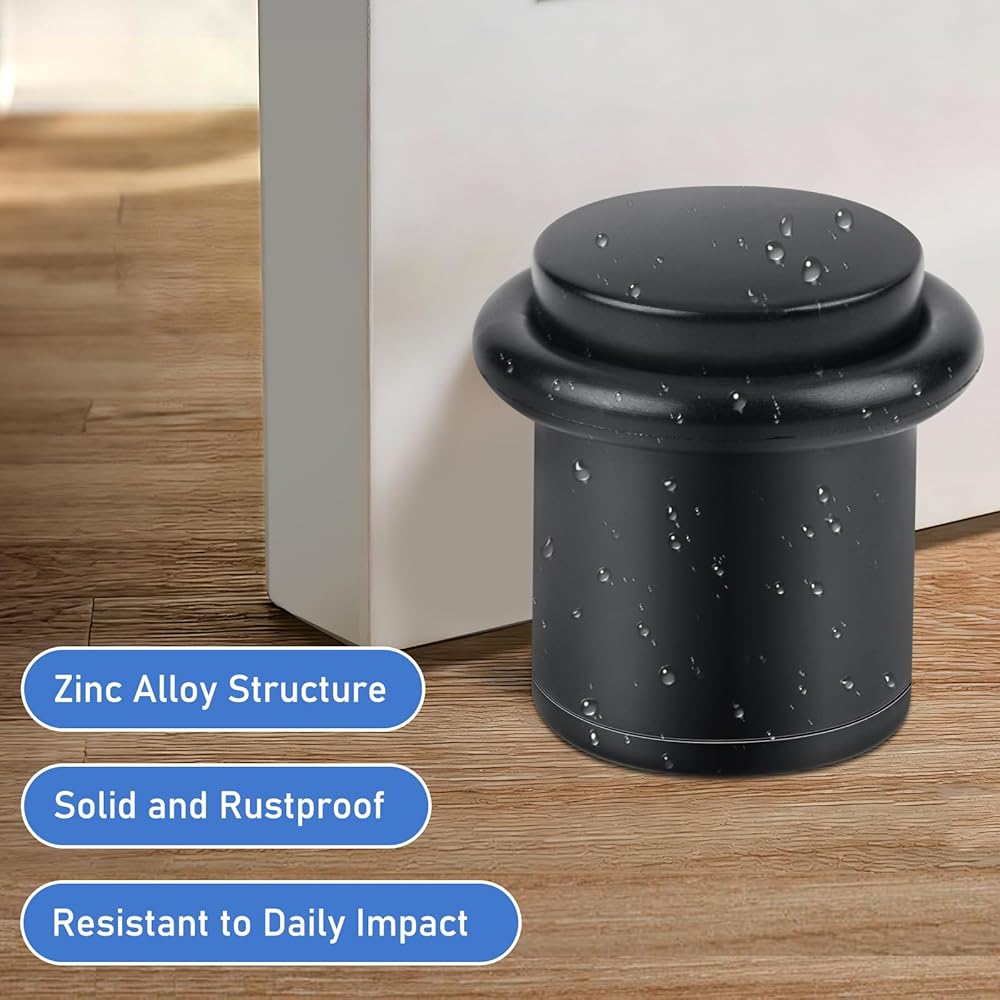 Minimalist Look with Hidden Screws: Black door stopper features a modern cylinder-shape that blends in with any room. Mounting screw are hidden for a neat finish, and the low-profile design helps prevent trips—safe for kids, pets, and high-traffic areas