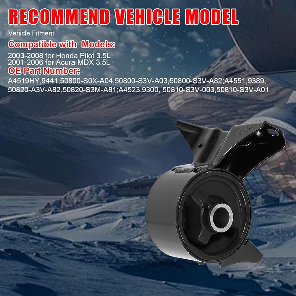 Compatible Vehicle Models: Compatible with 2003-2008 for Honda Pilot 3.5L,2001-2006 for Acura MDX 3.5L.(Attention:Please confirm the engine mount PART NUMBER/MAKE/MODEL/YEAR before purchasing to ensure it fits your vehicle)