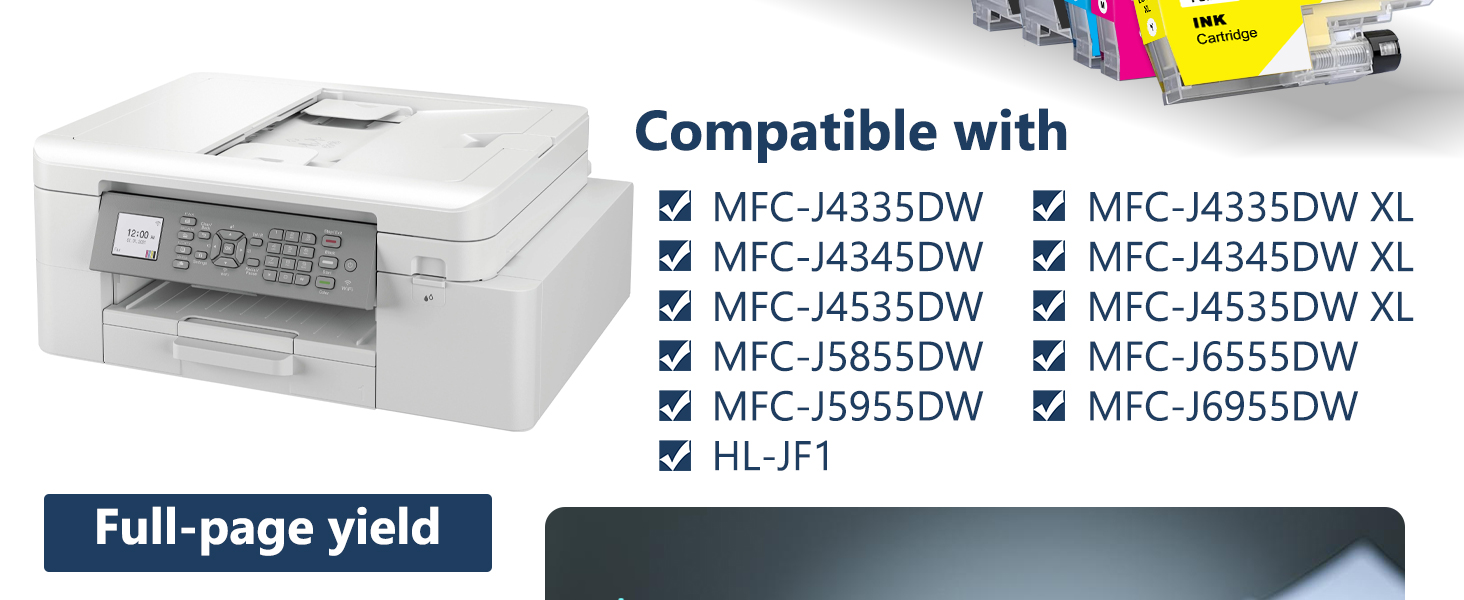 High Page Yield for ink LC406 XL: 6,000 Pages for LC406XL black ink cartridge, 5,000 Pages for LC406XL color ink cartridge