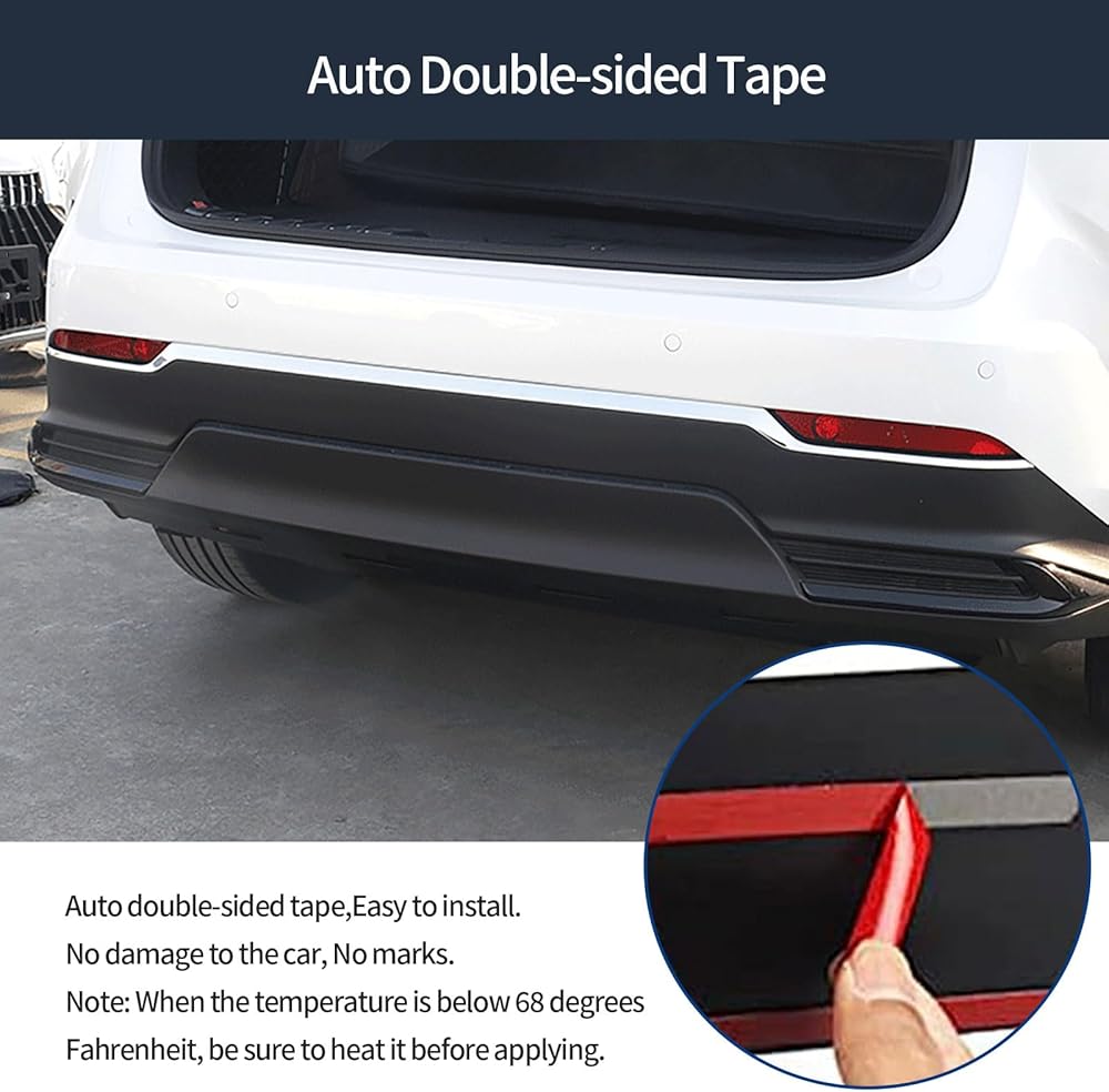 【Installation】: Easy to install with adhesive tapes, no damage to your car. Clean Rear Bumper before installation, and when the ambient temperature is below 68 degrees Fahrenheit, it may be better to warm the tape slightly.