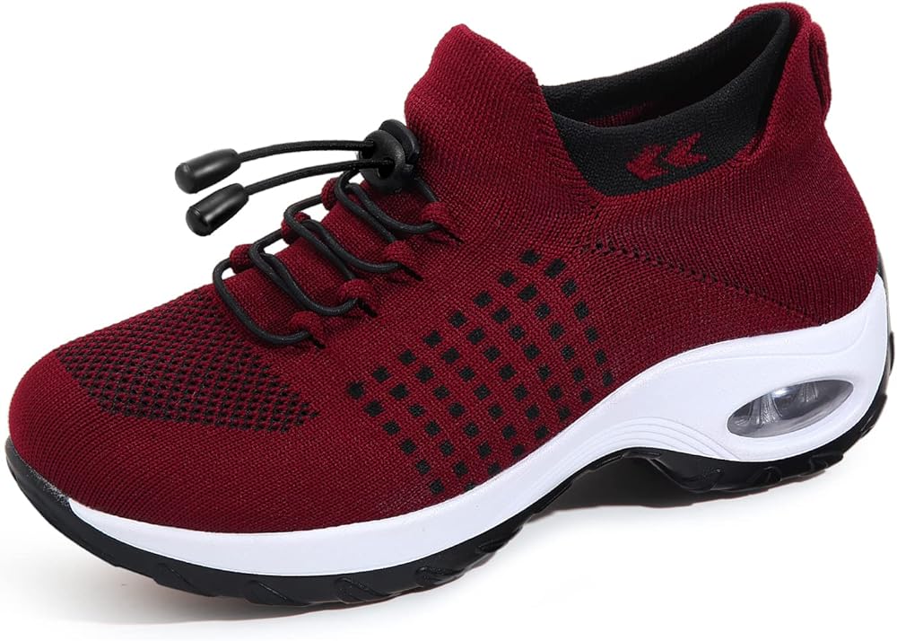 These women's air-cushioned running shoes feature a stretchy PU sole for durability, great grip, lightweight slip-on breathable mesh and a convenient heel pull. The cushioned design softens your footsteps and will keep you safe, stable and comfortable on any terrain