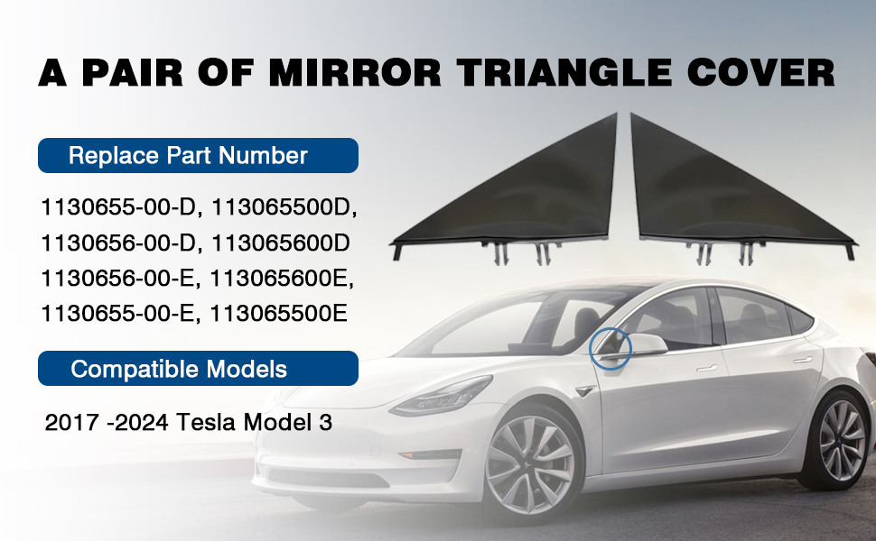 [Compatible With] A Pair Of Mirror Triangle Cover Fit for 2017-2024 Tesla Model 3, Please carefully verify that the above part numbers and vehicle models match your requirements to ensure a perfect fit