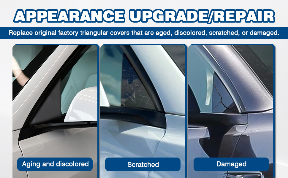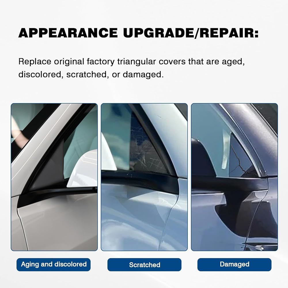 [Premium Durability] This pair of mirror-finish triangular covers is crafted from premium materials, featuring upgraded quality with outstanding wear resistance, corrosion resistance, and aging resistance. They effectively suppress wind noise while blocking rain and dust from entering door hinges and internal wiring harnesses, reducing corrosion risks