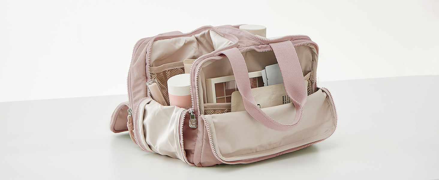 Wide-Open & Upright Structure – The wide-opening design allows for quick and easy access to all your cosmetics, while the middle compartment ensures that bottles stay upright to avoid leaks. Ideal for both vanity use and travel, this bag keeps everything organized without the mess.