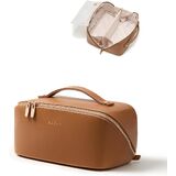 Flat-Lay Design: Double zipper opening allows the cosmetic bag to lay completely flat for effortless packing and quick access. A flip divider keeps items in place, so your collection stays neat and visible.