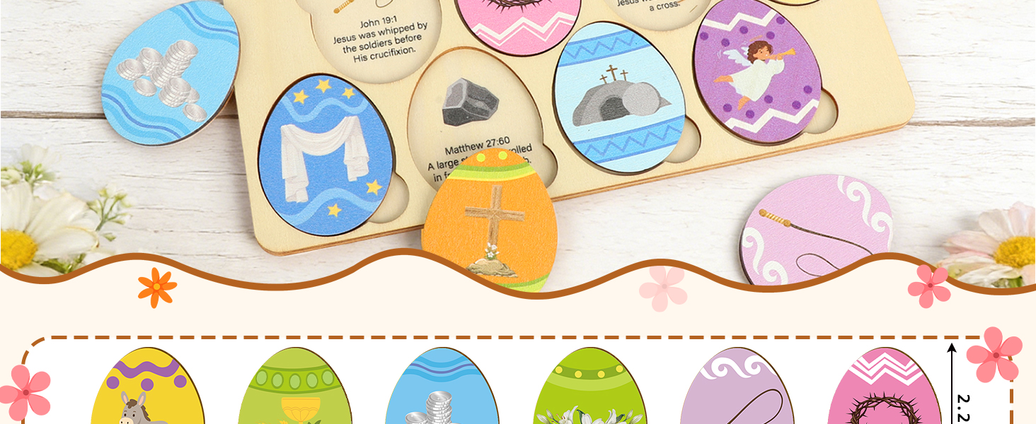 Meaningful Easter Gift: A thoughtful gift that combines play, learning, and spirituality. Once assembled, the elegant wooden eggs double as beautiful decor for your Easter basket, mantel, or tabletop display.